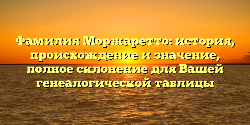 - Фамилия Моржаретто: история происхождения и значения, полное склонение для генеалогической таблицы – все, что нужно знать об этой фамилии