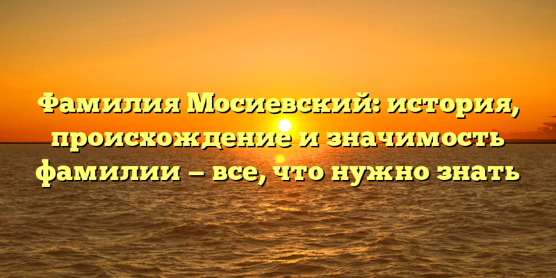 - Фамилия Мосиевский: происхождение, история и значимость – узнайте всё, что важно знать о своих корнях!