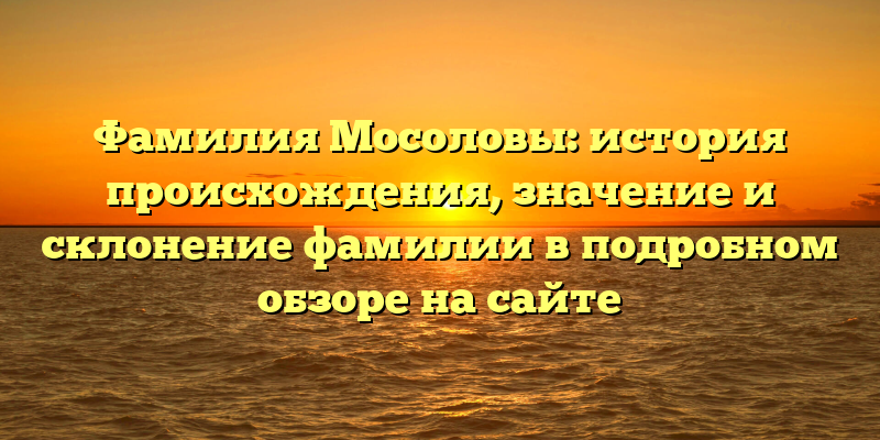 Фамилия Мосоловы: происхождение, значение и склонение — все, что нужно знать о этой фамилии