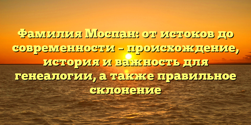 Эта статья будет представлять исторический анализ происхождения фамилии Моспан, ее значения для генеалогии, а также правильное склонение.