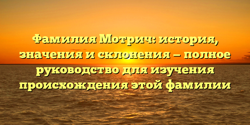 Исследуйте происхождение фамилии Мотрич: история, значения и склонения в нашем полном руководстве!