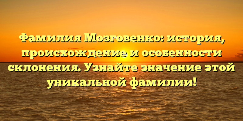 - Изучаем фамилию Мозговенко: происхождение, история и правильное склонение — все, что нужно знать о значимой родословной!