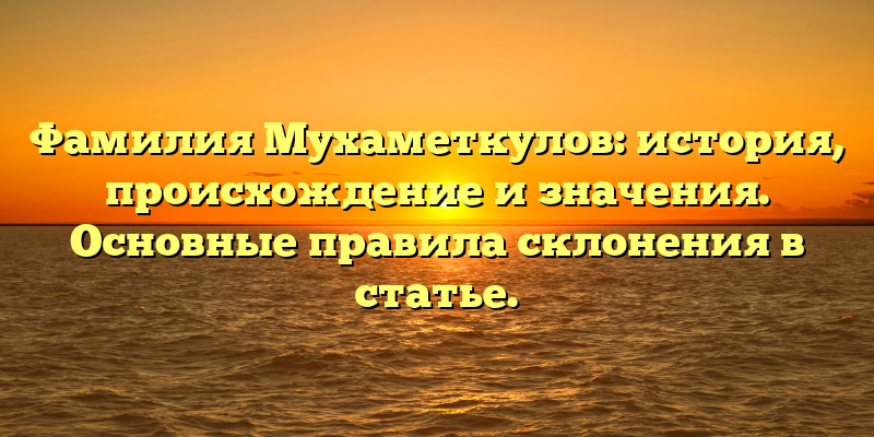 Исследование фамилии Мухаметкулов: его происхождение, история и значения. Важные советы по склонению