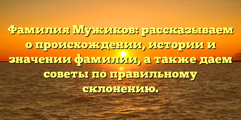 - Раскрываем тайны фамилии Мужиков: происхождение, история и правильное склонение — SEO-заголовок статьи о фамилии Мужиков.