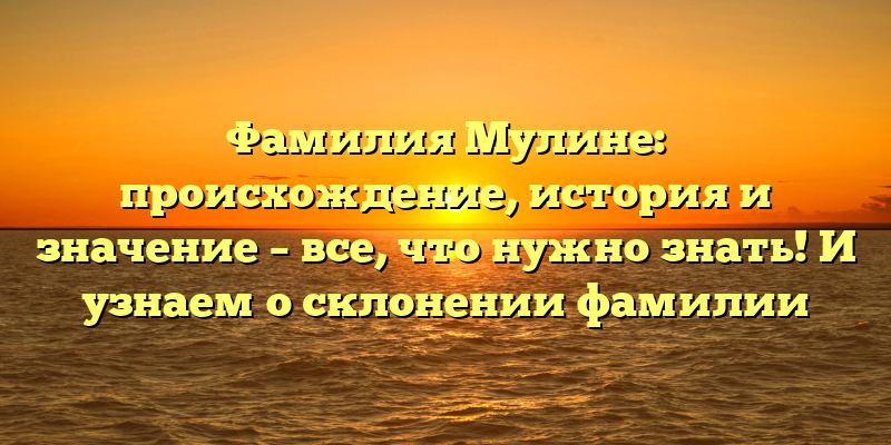 - Фамилия Мулине: происхождение, история и значение – узнайте все, что нужно о своих корнях и правильном склонении
