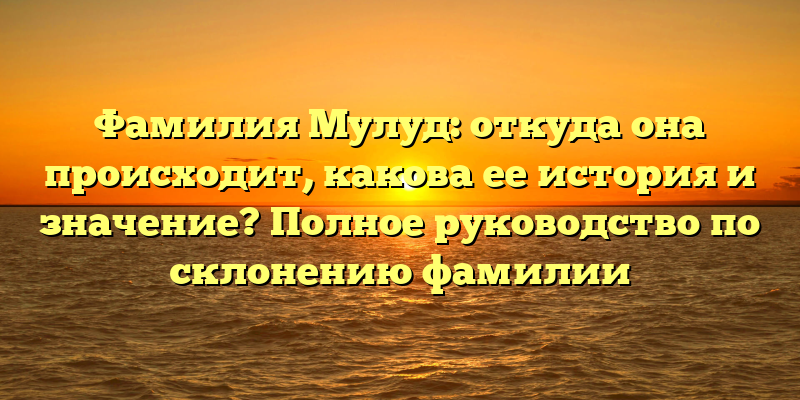 Если вас интересует происхождение и история фамилии Мулуд, то вы попали по адресу. В этой статье мы подробно расскажем про это и дадим полное руководство по склонению фамилии.