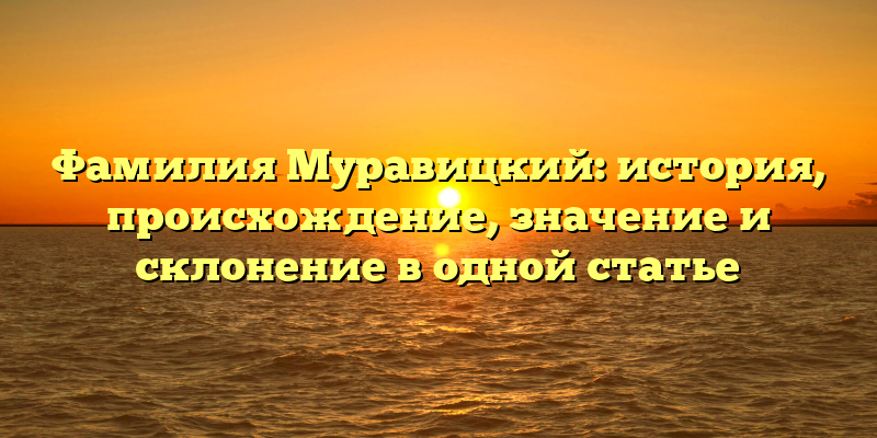 - Фамилия Муравицкий: Корни, Значение и Склонение в Одной Глубокоисследованной Статье