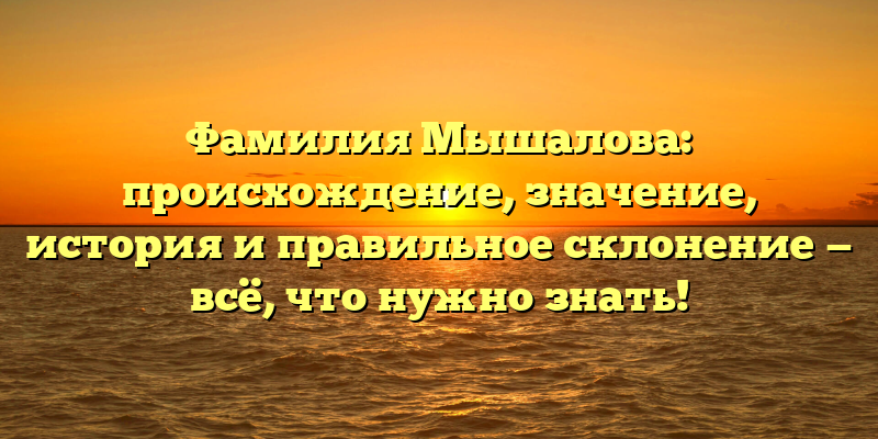 - Фамилия Мышалова: происхождение, значение и история — полное руководство по правильному склонению и всему, что вам необходимо знать!