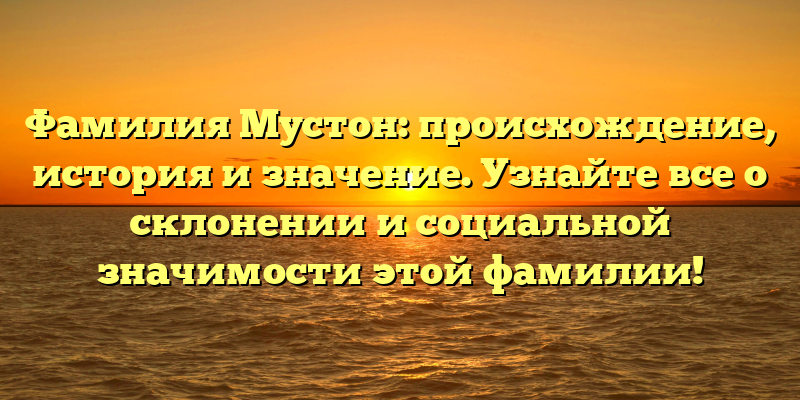 - Исследуем происхождение и социальное значение фамилии Мустон: узнайте о ее истории и склонении