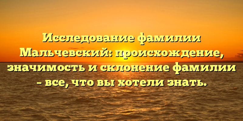 - Изучаем фамилию Мальчевский: история происхождения, значения и склонения — полный гид для любознательных