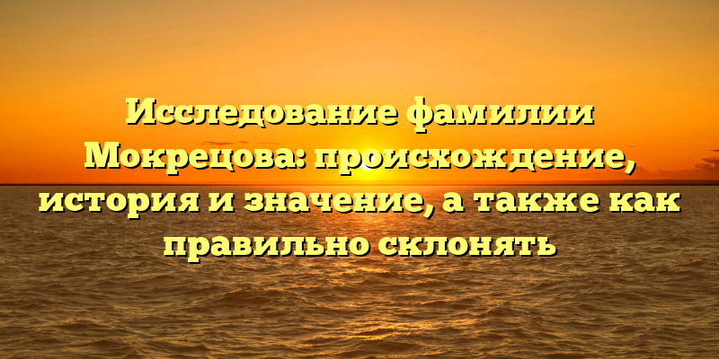 - История и происхождение фамилии Мокрецова: узнайте о ее значении и правильном склонении в нашей статье!