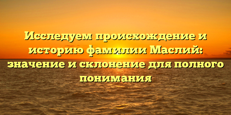 - Фамилия Маслий: история происхождения, значение и правильное склонение — все, что нужно знать