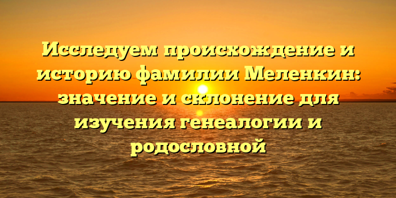 - Генеалогия фамилии Меленкин: рассказываем о происхождении, истории и значении для построения родословной