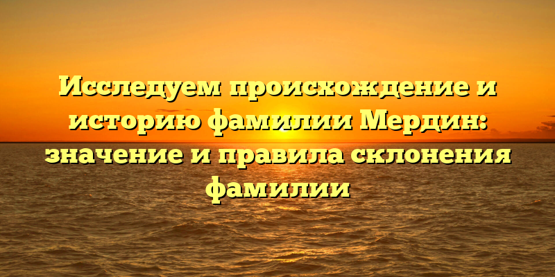 Фамилия Мердин имеет длинную историю, которая начинается в древности. В этой статье мы погрузимся в историю этой фамилии, изучим ее происхождение и значение, а также разберем правила склонения фамилии в различных падежах.