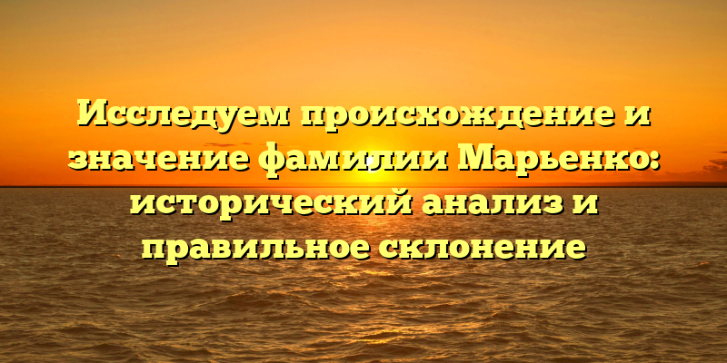 Происхождение и значение фамилии Марьенко: исторический анализ и правильное склонение – все, что нужно знать!