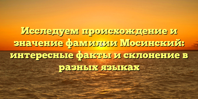 Если говорить о склонении фамилии Мосинский, то оно в каждом языке может быть разным. Например, в польском языке — Mosiński, в белорусском — Масінскі, в украинском — Мосінський, а в русском — Мосинский. Это связано с тем, что каждый язык имеет свое собственное правило склонения и спряжения глаголов.