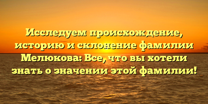 - Изучаем происхождение, историю и склонение фамилии Мелюкова: Узнайте больше о значении этой фамилии!