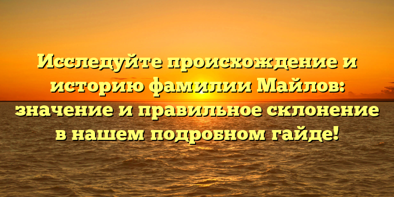 - Откройте тайны происхождения и истории фамилии Майлов: подробный гайд по значению и правильному склонению в SEO-оптимизированной статье!