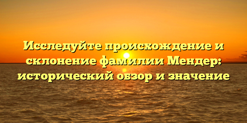 Узнать больше о происхождении и склонении фамилии Мендер — значит заглянуть в историю и культуру Германии и других германоязычных стран. Чтобы понять, как сформировалась и появилась данная фамилия, необходимо проследить её выбор и эволюцию через в течение веков.