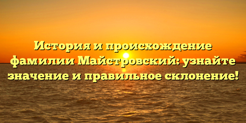 - Раскрываем тайну происхождения и значения фамилии Майстровский: советы по правильному склонению!