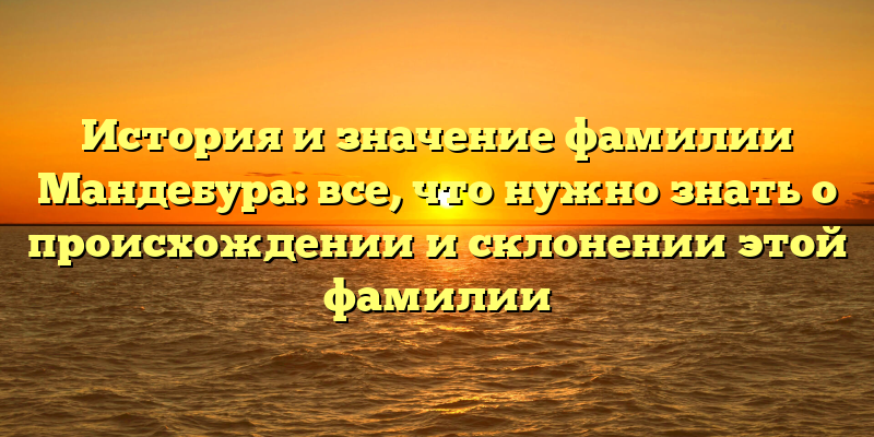 Фамилии – это не только набор букв, но и часть нашей исторической культуры. Изучение происхождения фамилий помогает нам лучше понять наших предков, их родословные и традиции, которые они передали нам. Одной из таких фамилий является Мандебура. В этой статье мы расскажем о происхождении и значении этой фамилии, а также о склонении и других интересных фактах.