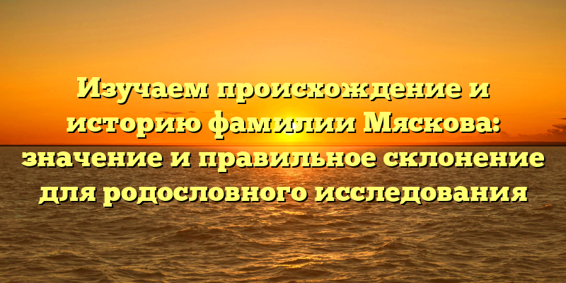 В данной статье мы изучим происхождение фамилии Мяскова, ее значение и правильное склонение для родословных исследований. Также рассмотрим историю рода и интересные факты о представителях семьи Мясковых.