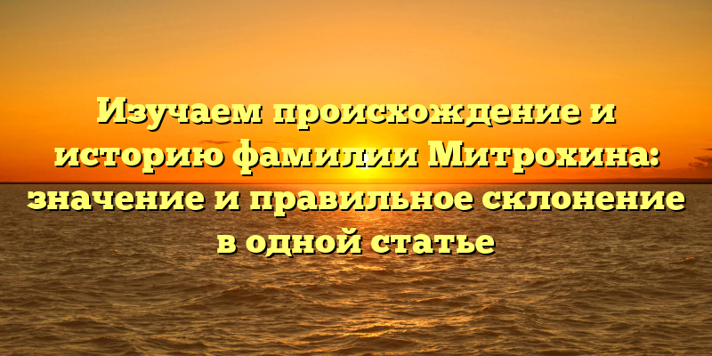 Фамилия Митрохина: История происхождения, значение и правильное склонение в одной статье — более dive into the origins and history of the Mitrokhin surname.