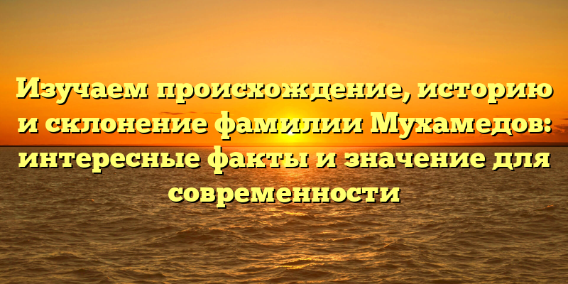 - От корней до наших дней: узнаем всю правду о фамилии Мухамедов и ее значимости в современном мире