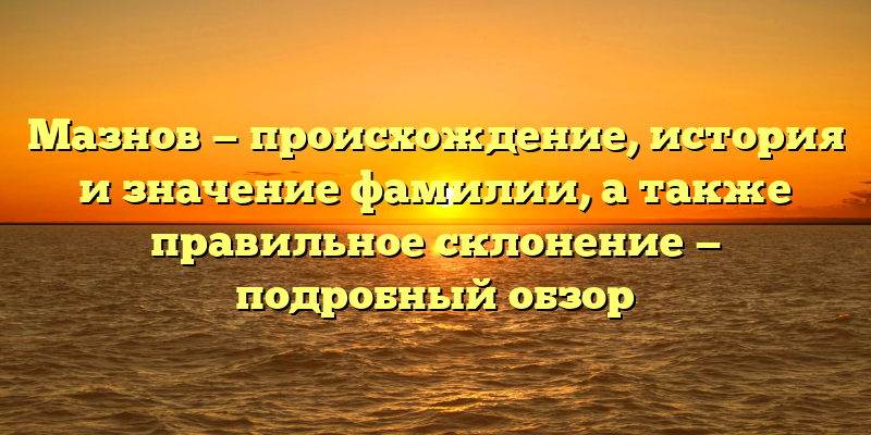- Мазнов: происхождение, история и значения фамилии — подробный обзор и правильное склонение.