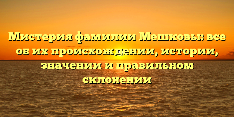 - Раскрытие тайны фамилии Мешковы: происхождение, значение и правильное склонение