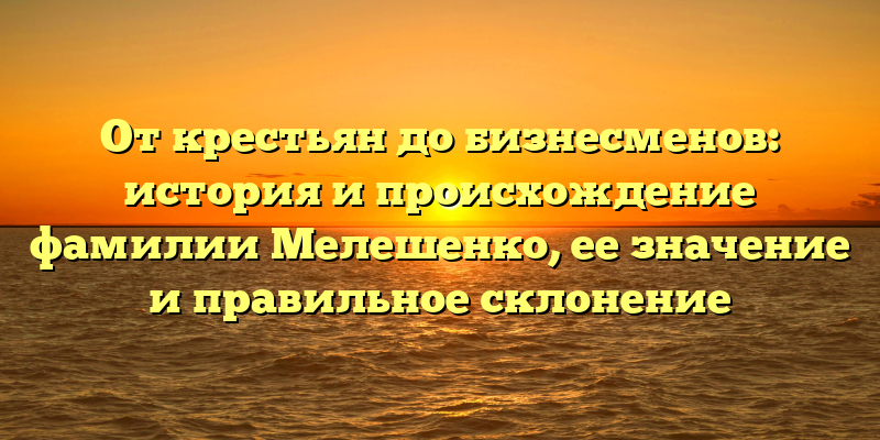 - Раскрытие тайн происхождения фамилии Мелешенко: от истории до правильного склонения для бизнесменов и крестьян