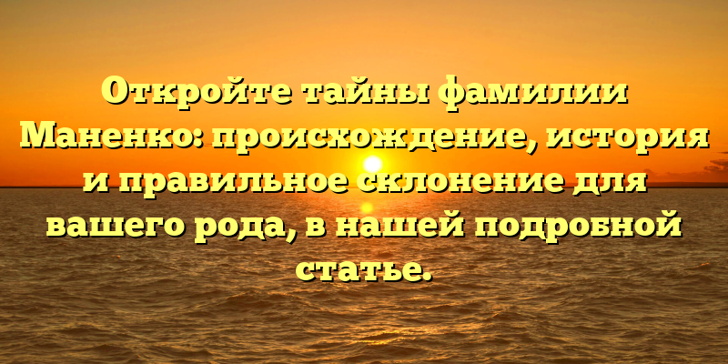 - Раскрываем тайны фамилии Маненко: происхождение, история и склонение под ваш род — узнайте все в нашей статье!