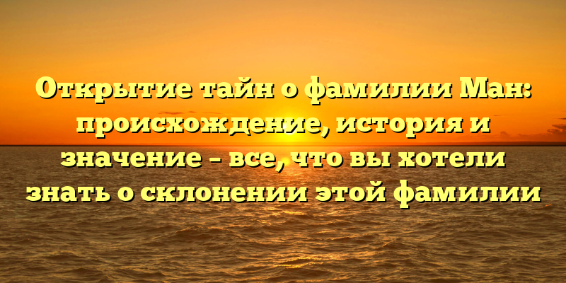 - Раскрытие тайн фамилии Ман: происхождение, история и значение – узнайте всю правду о склонении этого имени!