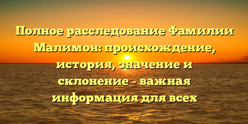 - Фамилия Малимон: История происхождения, значение и склонение — генеалогическое расследование, которое нельзя пропустить!