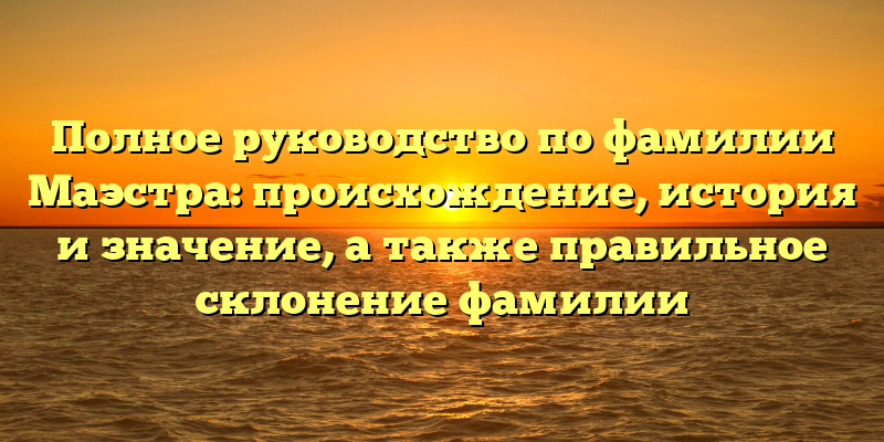 - Раскрываем все тайны фамилии Маэстра: происхождение, история и значение, а также подробное руководство по правильному склонению.