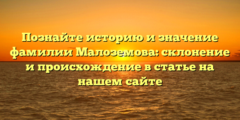 - Раскрываем тайны фамилии Малоземова: происхождение и структура в историческом обзоре нашего сайта