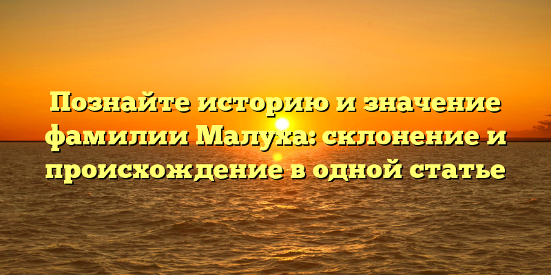 Фамилия Малуха: происхождение, склонение и значение в исторической статье.