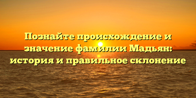 История фамилии Мадьян: происхождение, значение и правильное склонение — узнайте все!