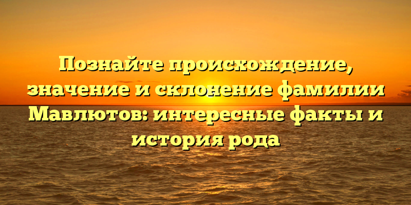 - Раскрываем тайны фамилии Мавлютов: происхождение, значение и история рода.