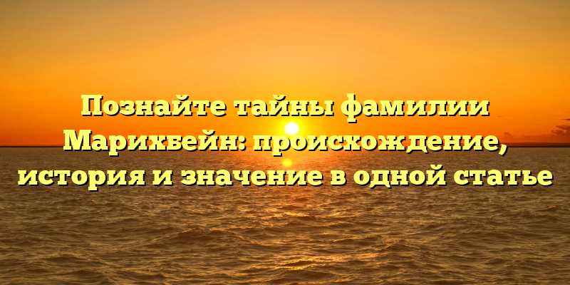 Раскрываем тайны фамилии Марихбейн: история, происхождение и значение в одной статье для любознательных.