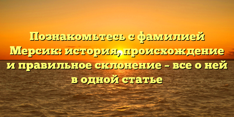 - История и происхождение фамилии Мерсик: узнайте о правильном склонении в нашей подробной статье