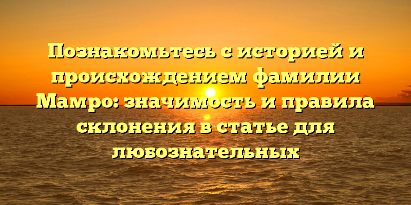 - История и происхождение фамилии Мамро: узнайте о ее значимости и правилах склонения в нашей увлекательной статье!