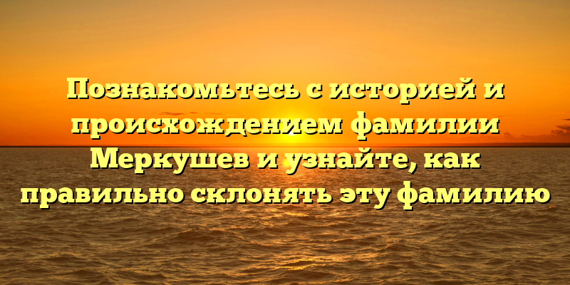 Меркушев – это фамилия, которая встречается довольно редко, но когда она упоминается, вызывает большой интерес. Если вы встретили человека с этой фамилией, то вы можете задаться вопросом, какую историю скрывает его фамилия и как правильно ее использывать в различных склонениях.