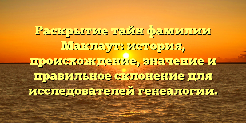 - Разгадка загадки Маклаут: происхождение и значение фамилии, исследование генеалогии и правильное склонение – полная история секретов этого завораживающего имени!