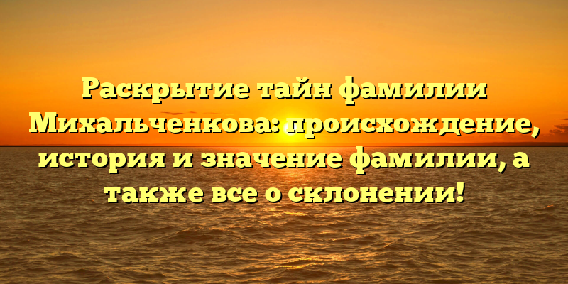 Секреты фамилии Михальченков: происхождение, история и правильное склонение – все, что вы хотели знать!