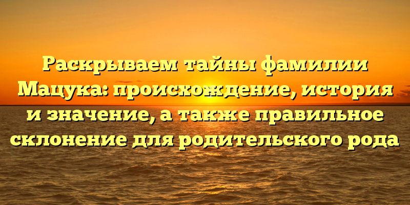 Фамилия Мацука является довольно распространенной среди населения России, но ее происхождение и история остаются далеко не всем известными. Если вы тоже хотите узнать больше об этой фамилии, то вы попали по адресу. В этой статье мы расскажем о происхождении фамилии Мацука, ее истории и значении, а также дадим советы по правильному склонению для родительского рода.