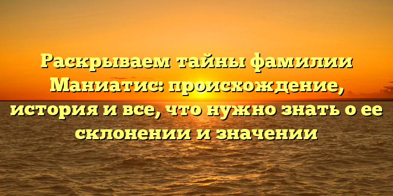 - История и происхождение фамилии Маниатис: раскрываем ее тайны и поможем правильно склонять и понимать значение