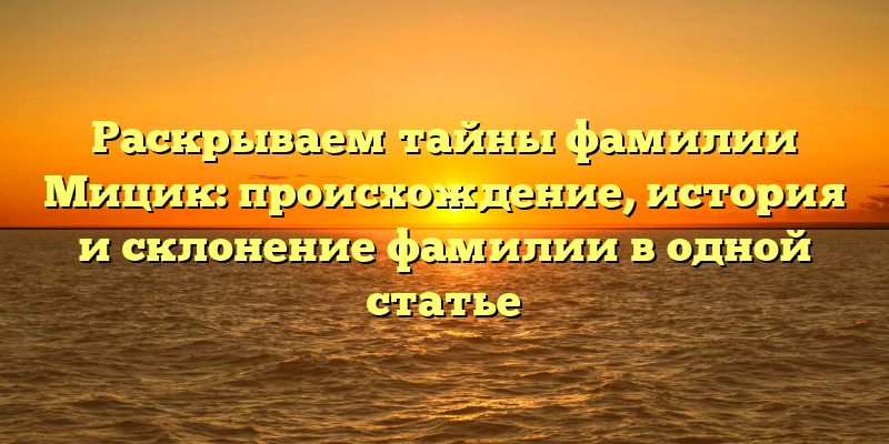 История и происхождение фамилии Мицик: раскрываем все секреты в одной статье!