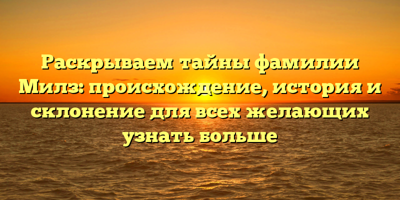 - Открываем тайны фамилии Милз: полный гайд по происхождению, истории и склонению для любопытных