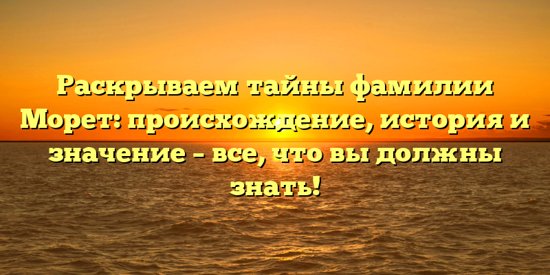 Тайны фамилии Морет: происхождение, история и значение в одной статье — узнайте все, что никто не говорит!